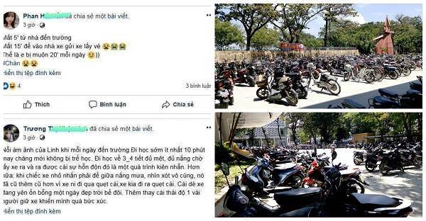 “Gửi xe là nỗi ám ảnh của mình mỗi ngày đến trường. Đi học về 3 – 4 tiết đủ mệt, đủ nắng, chờ lấy xe ra, và ra được cái sự hỗn độn đó là một quá trình kiên nhẫn. Hơn nữa, khi chiếc xe phải để giữa nắng mưa, nhìn xót vô cùng, nó đã cũ càng cũ hơn. Cái dè xe đang yên bỗng một ngày bễ đôi. Thái độ của một vài người giữ xe càng khiến mình b ức x úc” – bạn T.T.N.L bình luận.