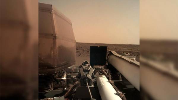 Hình ảnh rõ nét đầu tiên đó được chụp từ ống kính mắt cá của Insight. Rất may mắn là hình ảnh này có độ phân giải cao, không bị mất nét và ống kính không bị che khuất bởi bụi và đất đ