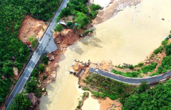 Ngoài việc bị sập cầu, tuyến Quốc lộ 1A đi vào khu du lịch Bình Tiên xói lở, giao thông qua đây ùn tắc.