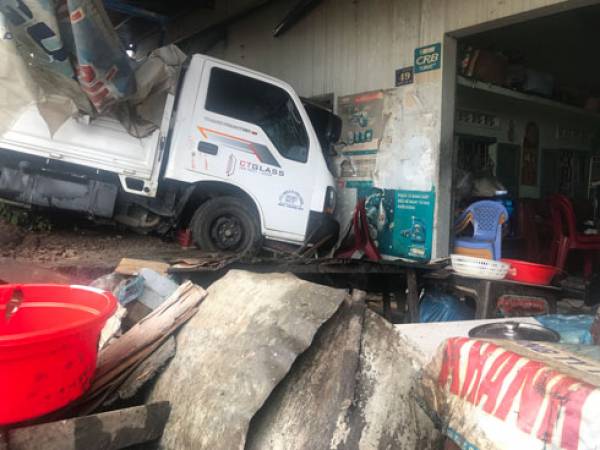 Xe tải đâ m s ập nhà dân, 4 người may mắn thoá t chế t