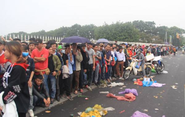 Người hâm mộ xếp hàng dài mua vé xem đội tuyển Việt Nam thi đấu (Anh: Ngọc Tú)