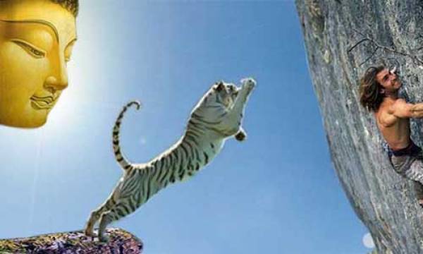 Một người đàn ông bị con hổ dữ rượt đuổi. Anh chạy thục mạng không dám ngoái đầu nhìn lại. Cuối cùng khi đến bờ vực thẳm anh không thể chạy được nữa, trong khi đó con hổ vẫn còn ở phía sau.