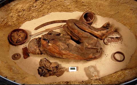 Xác ướp của người đàn ông trưởng thành trong tư thế của một bào thai có niên đại 6.000 năm. Xác ướp được bảo quản hoàn hảo bởi các điều kiện tự nhiên của nơi chôn cất ở sa mạc.