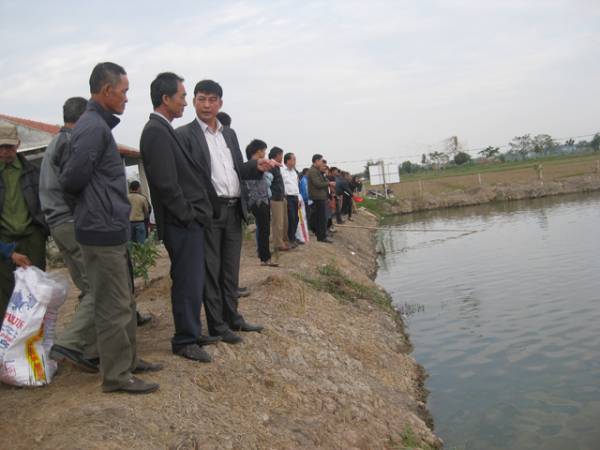 Tham quan mô hình nuôi cá rô phi theo quy trình VietGAP tại gia đình ông Phạm Văn Nghiêu, ở xã Hà Vân, huyện Hà Trung, tỉnh Thanh Hóa.