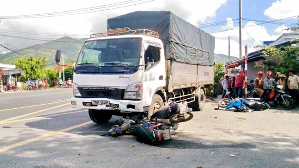 Đánh lái tránh một xe băng ngang quốc lộ 1A, xe ô tô tải đã "lùa" 3 xe máy khiến một n ạn nhâ n t ử vo ng