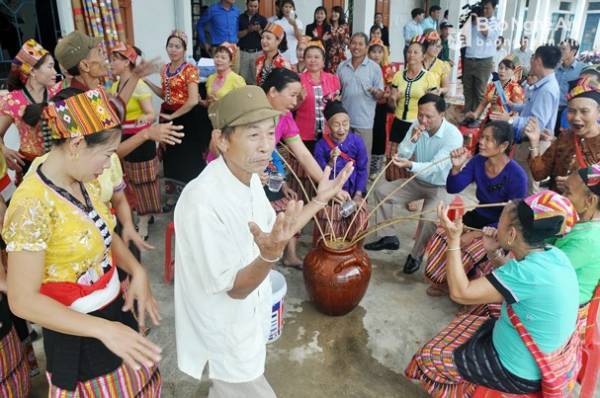 Bà con bản Bộng vui uống rượu cần, múa lăm vông. Ảnh: Công Kiên