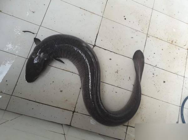 Con cá chình này nặng 17 kg, là con cá lớn nhất, khủng nhất từ trước đến nay người dân bắt được trên địa bàn huyện. Người bắt được con cá chình khủng này là anh Hà Văn Nguyên.