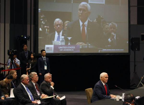 Phát biểu với báo giới sau cuộc gặp Tổng thống Hàn Quốc Moon Jae-in bên lề một hội nghị châu Á - Thái Bình Dương ở Singapore, ông Pence nêu rõ: "Chúng tôi không muốn lặp lại sai lầm mà các chính quyền tiền nhiệm, nói thẳng ra là cả hai đảng chính trị, đã mắc phải trong vòng vài thập niên qua, khi các lời hứa được xác lập, các biện pháp trừng phạt được dỡ bỏ, viện trợ kinh tế được triển khai, nhưng rồi các lời hứa bị phá vỡ".