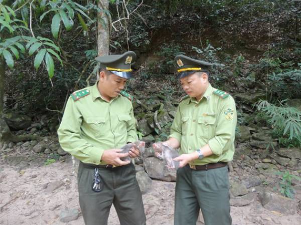 Kiểm lâm Bắc Giang kiểm tra tập tính hoang dã của loài Dúi mốc nhỏ trước khi tái thả về môi trường tự nhiên