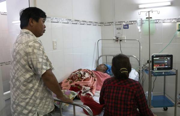 Ông Lê Văn Hải đang được c ấp cứ u tại bệnh viện Đa khoa tỉnh Ninh Thuận. (Ảnh: Duy Quan).