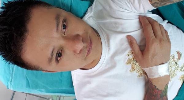 Trên trang cá nhân của nam ca sĩ vừa đăng tải hình ảnh gương mặt với đôi mắt tím bầm tại bệnh viện cùng dòng chú thích: "Hậu quả của 1 loạt các Sự cố lên tiếp khiến cơ thể: stress".