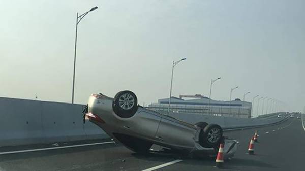 Xe Toyota Vios bị đâm lật ngửa trên cao tốc Hạ Long - Hải Phòng ẢNH N.H