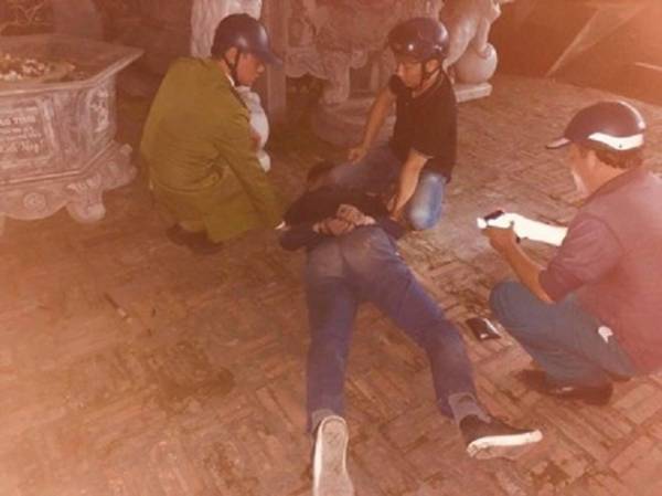 Công an bắt giữ đối tượng có biểu hiện không bình thường xả súng liên hoàn trong chùa. Ảnh Dân Trí