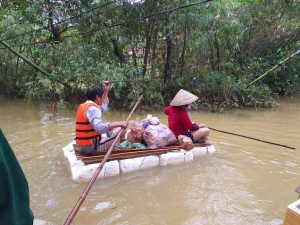 “Do cơn mưa kéo dài hai ngày qua, khiến chúng tôi trở tay không kịp, nhiều nhà họ bỏ của chạy thoát thân, còn nhiều người khác họ dùng ruột xe bơm lên hoặc các thùng xốp buột lại để di chuyển ra bên ngoài.