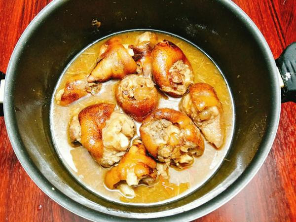 Bước 2: Cho dầu vào nồi đến khi dầu sôi thì cho thịt chân giò đã ướp vào chảo, đảo qua cho hơi săn mặt thịt, thêm nước vào khoảng ngập khoảng 2/3 thịt, ninh đến khi thịt vừa chín mềm.