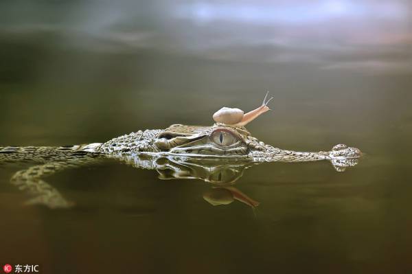 Đáng ngạc nhiên là khi phát hiện ra ốc sên bò lên đầu mình và công khai thách thức quyền lực, cá sấu rất kiên nhẫn, không hề giận dữ. Toàn bộ khung cảnh trông rất hài hòa.
