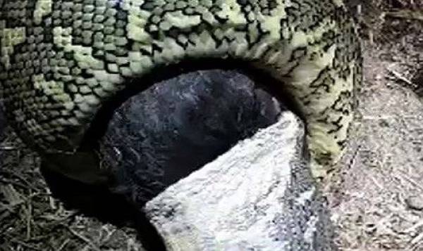 Đoạn video ghi lại hình ảnh con trăn dài 2,5 mét cuộn mình nuốt chửng một con gà ở góc nhà. Con trăn chỉ mất gần 30 phút để nuốt chửng xác gà.