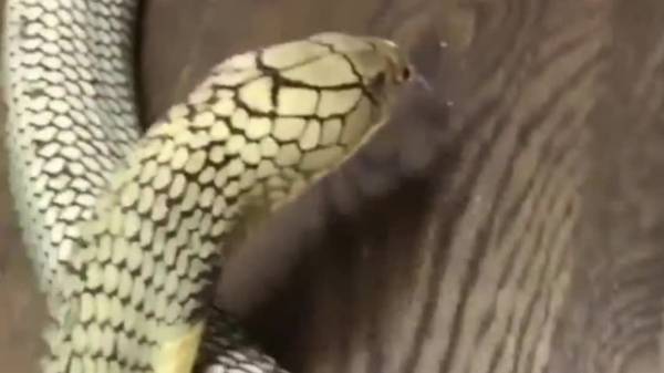 Đoạn video ghi lại cảnh người chủ nhân không ngần ngại giúp rắn hổ mang chúa cực độc lột bỏ lớp da chết.