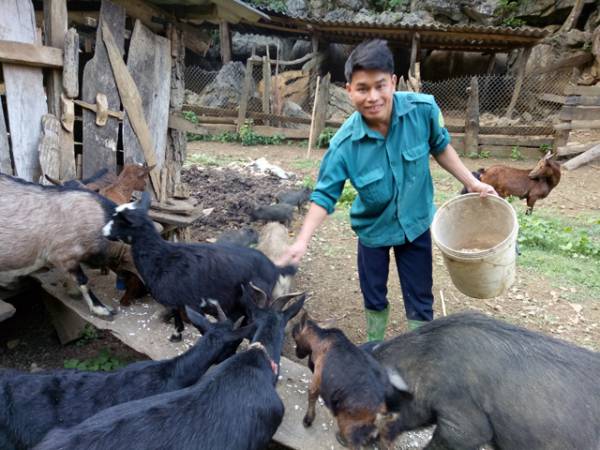 Anh Tiềm chăm sóc đàn dê. Ảnh: Tuệ Linh.