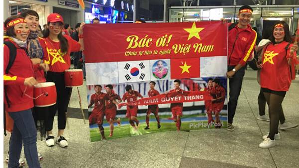 Từ 4 giờ sáng nay, 11.12, sân bay Nội Bài đã náo nhiệt, rực rỡ với hàng trăm cổ động viên từ Hà Nội, Hải Phòng, Thanh Hoá... bay sang Malaysia tiếp lửa cho tuyển Việt Nam trong trận lượt đi Chung kết AFF.