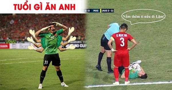 Với những pha nằm ôm bóng hơi lầy và nhây nhây của mình trên sân bóng, Văn Lâm đã trở thành chủ đề chế ảnh của rất nhiều cư dân mạng.
