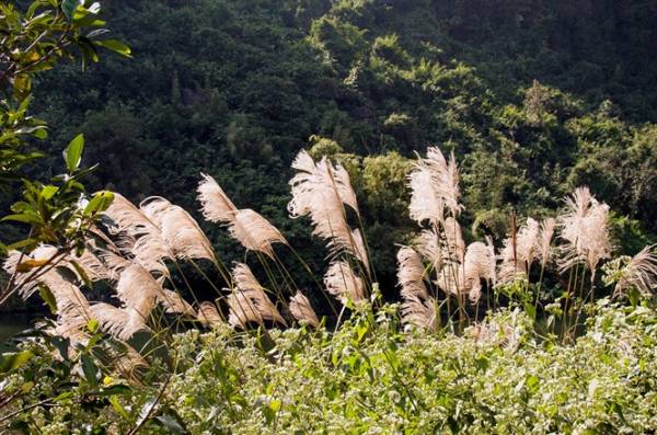 Là khu du lịch nổi tiếng ở Ninh Bình, những ngày này đến với Tràng An, trên dọc đường đi vào vùng Di sản, hoa lau nở trắng xóa, vương cánh lên cả những loài cây khác. Nhờ hoa cỏ lau, những núi đá hùng vỹ trở nên mềm mại, đẹp lạ thường. Mỗi lần gió thổi, hai bên con đường lại như những dải lụa trắng uyển chuyển, dịu dàng làm xao xuyến trái tim của biết bao lữ khách.