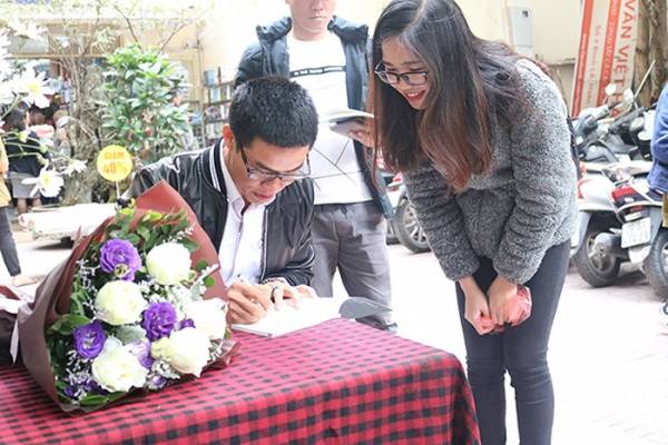 Nhà thơ Nguyễn Phong Việt ký tặng sách độc giả Hà Nội