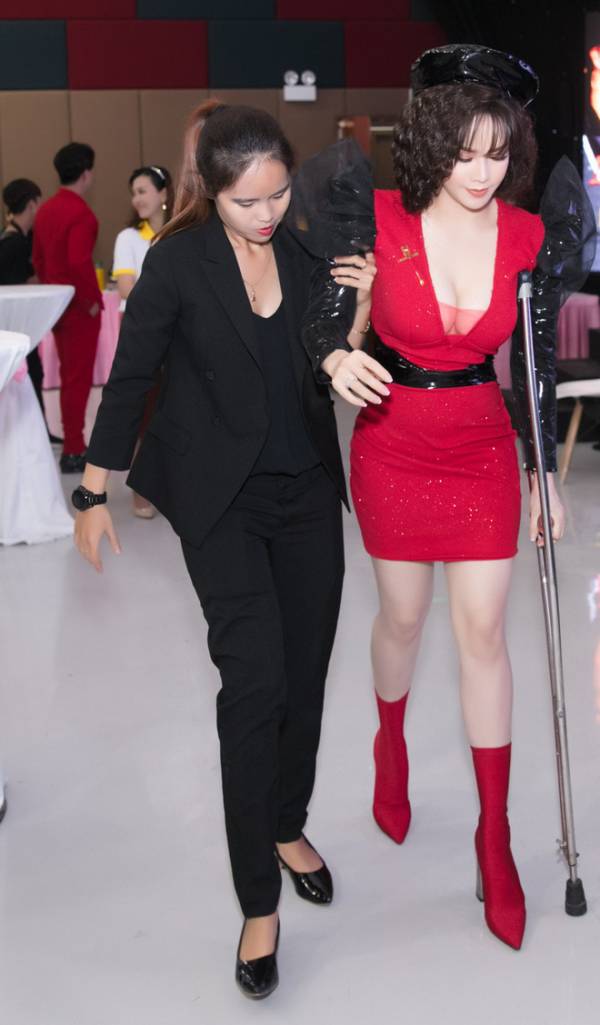 Nhật Kim Anh bị mảng kính lớn đâm chấn thương chân vẫn chống nạng xuất hiện xinh đẹp tại sự kiện