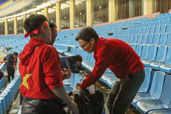 Một số hình ảnh Phó Thủ tướng Vũ Đức Đam tham gia dọn rác cùng các cộng sử sau trận đấu chung kết lượt về AFF Cup 2018