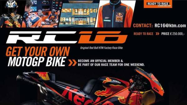 Thông thường, những chiếc mô tô đua trong giải MotoGP rất hiếm khi được bán ra cho khách hàng cá nhân do các đội đua muốn giữ kín bí mật công nghệ để tránh bị đối thủ "bắt bài". Chúng thường chỉ được bán ra sau nhiều năm, khi công nghệ trong giải đã có những bước tiến vượt bậc hoặc những dịp đặc biệt. Chính vì vậy, việc 2 chiếc KTM RC16 được bán ra đã gây chú ý cho những fan mô tô trên Thế giới. Đặc biệt hơn, cặp đôi xe đua này đều chưa qua sử dụng, do chính KTM sản xuất tại nhà máy ở Mattighofen và bán ra.