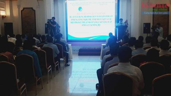 Quang cảnh hội nghị tổng kết mô hình nuôi lợn sinh sản áp dụng công nghệ thụ tinh nhân tạo.