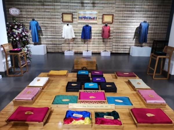 Chiều 7/12, Trung tâm giao lưu văn hóa phố cổ đã khai mạc triển lãm “Sắc tơ APEC 2017”, giới thiệu Bộ sản phẩm dành cho lãnh đạo các nền kinh tế tham dự Tuần lễ Cấp cao APEC 2017. Sản phẩm trưng bày được thực hiện theo bí quyết gia truyền của nghề dệt lụa tơ tằm truyền thống.