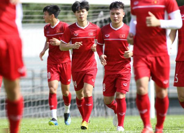 Đội tuyển Việt Nam trong buổi tập đầu tiên ở Kuala Lumpur vào sáng 8/12. Ảnh: Quang Thịnh.