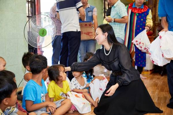 Cô luôn dành thời gian đi từ thiện mỗi khi về Việt Nam.