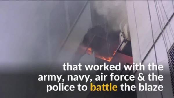 Ngoài lính cứu hỏa, các đơn vị thuộc không quân và hải quân cũng tham gia chữa cháy. Tuy nhiên, công tác ứng phó gặp nhiều khó khăn do xe thang không đủ cao để tiếp cận các tầng trên cùng. Đến chiều tối, đám cháy đã được dập tắt và lực lượng cứu hộ cũng đã hoàn tất việc kiểm tra các tầng lầu nhằm tìm kiếm người sống sót.