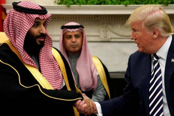 Tổng thống Mỹ Donald Trump bắt tay Thái tử Ảrập Xêút Mohammed bin Salman tại Phòng Bầu dục, Nhà Trắng ngày 20/3/2018. Ảnh: Reuters