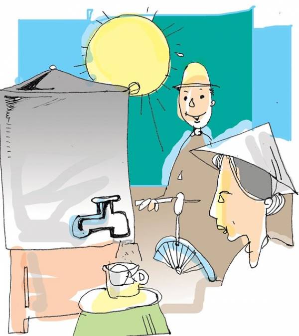 Dưới cái nắng chói chang của thành phố mùa này, mấy thùng trà đá miễn phí phát huy tác dụng hơn bao giờ hết. Trên mấy góc đường hay phía trước một tòa nhà nào đó, thỉnh thoảng chú bảo vệ hay một người hảo tâm lại ra thăm chừng, rồi châm thêm đá, thêm trà. Chuyện những gánh hàng rong cũng không có gì lạ, bữa đắt thì ăn sang theo kiểu bán đắt, còn ế thì ăn giùm nhau dĩa cơm, ly chè, không tiền mà đói bụng thì ăn chịu, ghi sổ, bữa sau có tiền thì trả. Chuyện đời lắm nỗi, dù nhà hàng sang trọng hay những gánh hàng rong tảo tần, tựu chung vẫn là một phần của nhịp sống, một phần hồn cốt của đô thị nơi này. Nhiều khi người ta mặc áo vest, đi giày tây sang trọng nhưng vẫn tìm cho ra một gánh bún riêu vỉa hè cũng vì cái hương vị, cái không gian ngồi không lẫn vào đâu. Trời nóng, tình vẫn tràn, là vậy!