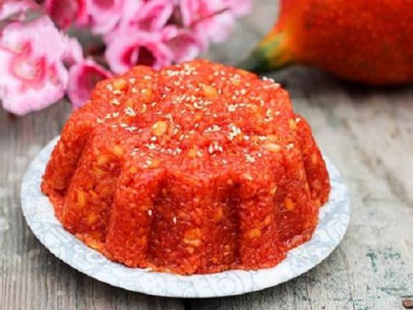 Màu đỏ sẽ tượng trưng cho vận đỏ, màu vàng tượng trưng cho của cải, tiền bạc nên những món như xôi gấc, canh khổ qua sẽ tăng thêm ý nghĩa may mắn, ước nguyện “Cầu được ước thấy”. Song song với đó, người ta cũng tránh những món ăn gắn với điềm xui như mực, thịt chó, xôi đỗ đen vào đầu tháng…
