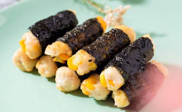 Món thịt gà cuộn rong biển với vẻ ngoài khá bắt mắt kèm theo đó là hương vị vừa mềm, vừa ngọt của ức gà quyện cùng lớp rong biển giòn tan, nóng hổi bên ngoài ăn rất vừa miệng.