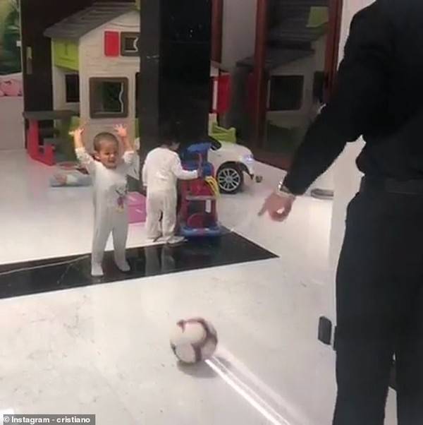 Ngay cả cậu út nhà Ronaldo mới chỉ một tuổi cũng đã “trình làng” khả năng sút bóng thiên bẩm của mình. Đoạn clip ghi lại cảnh hai cha con nhà CR7 cùng chơi đùa cùng trái bóng đã khiến CĐM hết sức thích thú.