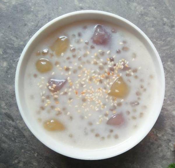 - Cho chè khoai dẻo ra bát và rắc lên trên ít vừng rang là hoàn thành.