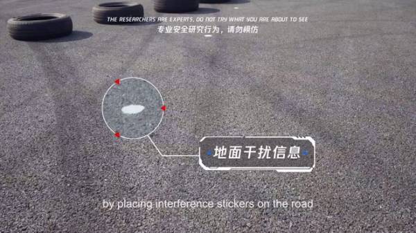 Đầu tiên, họ tìm cách thay đổi các dấu mốc nhận biết dưới mặt đường, bằng cách đặt thêm những miếng dán lên vạch phân làn để làm cho nó mờ đi trước camera nhận dạng. Thử nghiệm chứng minh phương cách này hiệu quả, nhưng theo các nhà nghiên cứu bảo mật, việc dán giấy lên vạch phân làn rất lộ liễu, chưa kể đây là hành động phạm pháp rõ ràng.