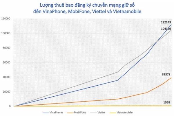 Sáng 1/4, Cục Viễn thông (thuộc Bộ Thông tin và Truyền thông) đã cập nhật những số liệu mới nhất liên quan tới kết quả chuyển mạng giữ số (MNP) giữa các nhà mạng VinaPhone, MobiFone, Viettel và Vietnamobile. Theo đó, tính từ ngày bắt đầu triển khai MNP (ngày 16/11/2018) đến hết ngày 31/3/2019, đã có tổng cộng 256.739 thuê bao đăng ký chuyển mạng giữ số; nhưng chỉ có 184.038 thuê bao chuyển mạng thành công (chiếm 71,7%), còn lại 57.672 thuê bao bị nhà mạng gốc từ chối cung cấp dịch vụ này.