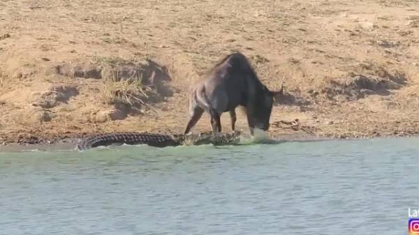 Clip: Kết cục bất ngờ của trận kịch chiến giữa cá sấu và linh dương đầu bò