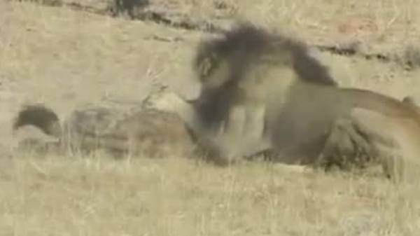 Sự việc xảy ra tại khu bảo tồn Kgalagadi Transfrontier Park nằm giữa Botswana và Nam Phi. Đoạn video ghi lại cảnh một con linh cẩu đụng độ sư tử đực hung hãn và bị kẻ săn mồi tấn công.