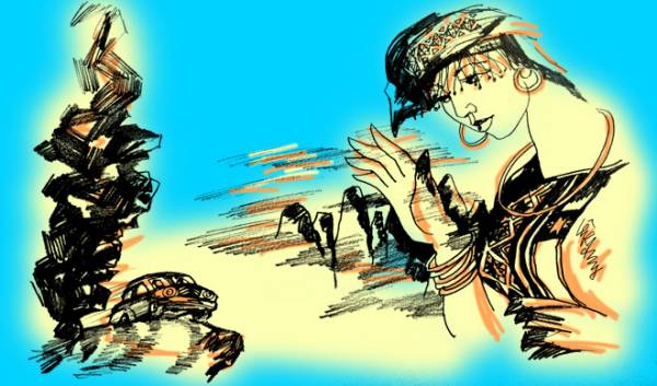 Qua làn kính xe phủ mờ mưa bụi, thấy một cái bóng lùng nhùng trong cái áo mưa vải bạt xô ra dưới lòng đường vẫy vẫy tỏ vẻ rất khẩn thiết, Đoan vội hãm xe và đánh tay lái cho chiếc taxi tạt vào vệ đường. Hạ cửa kính, Đoan nhận ra một gương mặt đàn ông ụ ị, lòa nhòa, lởm khởm râu ria và một giọng nói lơ lớ: “Anh lái taxi à! Làm ơn cho mình đi Lao Cai với vớ!”.