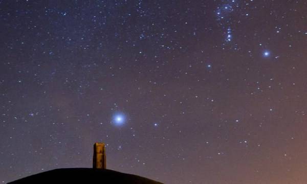 Có thể nhìn rõ chòm sao Orion phía trên Glastonbury Tor nhưng 57% người dân ở Anh phải rất khó khăn để có thể nhìn thấy 10 ngôi sao trong chòm sao này. Ảnh: Ben Birchall / PA