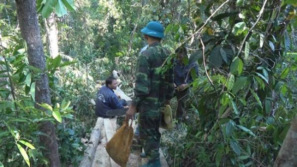 Sau khi đưa 4 đối tượng vào chỉ điểm để khám nghiệm hiện trường thì tổ công tác phát hiện có 1 nhóm lâm tặc đang chặt hạ cây rừng tại tiểu khu này. Thấy có người, nhóm lâm tặc đã nhanh chóng tẩu thoát, bỏ lại hiện trường 1 máy cưa lốc và hàng chục cây rừng bị chặt hạ nằm ngổn ngang. Qua đo đếm, có trên 40m3 gỗ các loại thuộc nhóm V đến nhóm VIII đã bị các đối tượng cưa hạ.