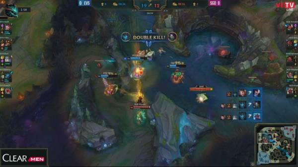 Phút 28, SGD tranh chấp Baron thất bại và sau đó cố gắng lao vào giao tranh với EVS. Với sự chênh lệch trang bị và bùa lợi Baron, EVS dễ dàng đè bẹp tất cả thành viên của EVS. Chiến thắng dễ dàng với sự áp đảo hoàn toàn của EVS sau 30 phút.