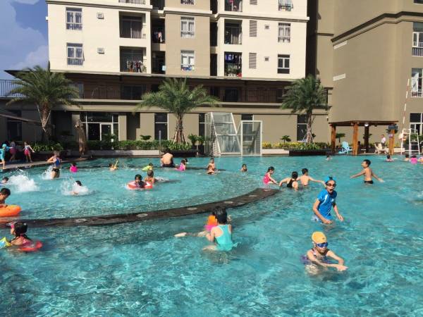 Bể bơi cũng là nơi để các phụ huynh đưa con tới trốn nóng
